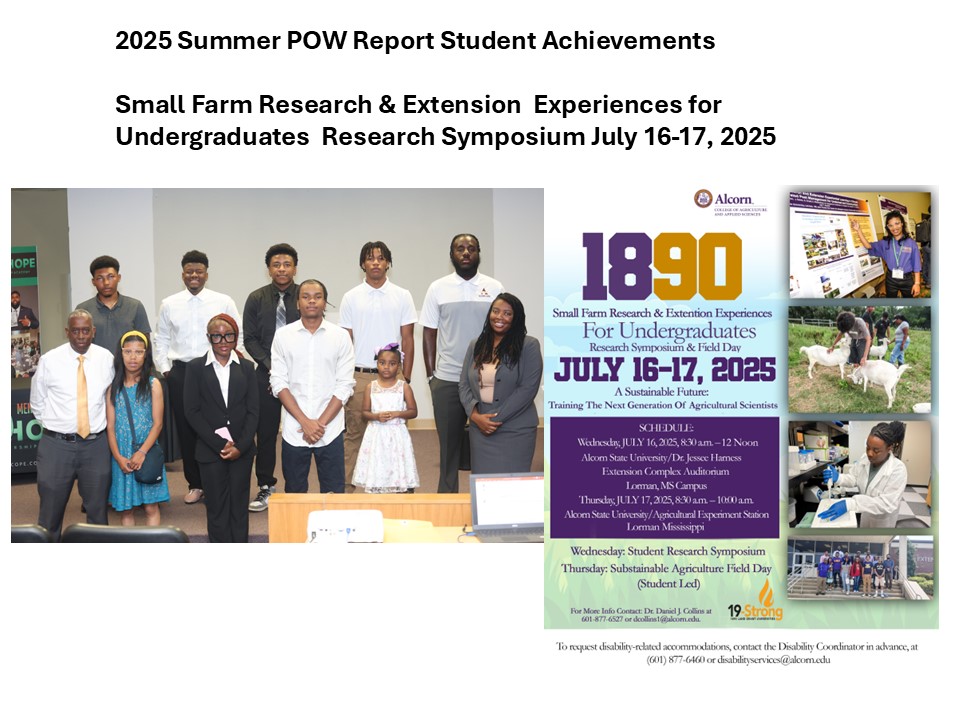 This symposium featured research and extension oral and poster presentations from 1890 Small Farm interns from Alcorn State University, Tuskegee University, North Carolina A & T, Southern University, and Louisiana State University.