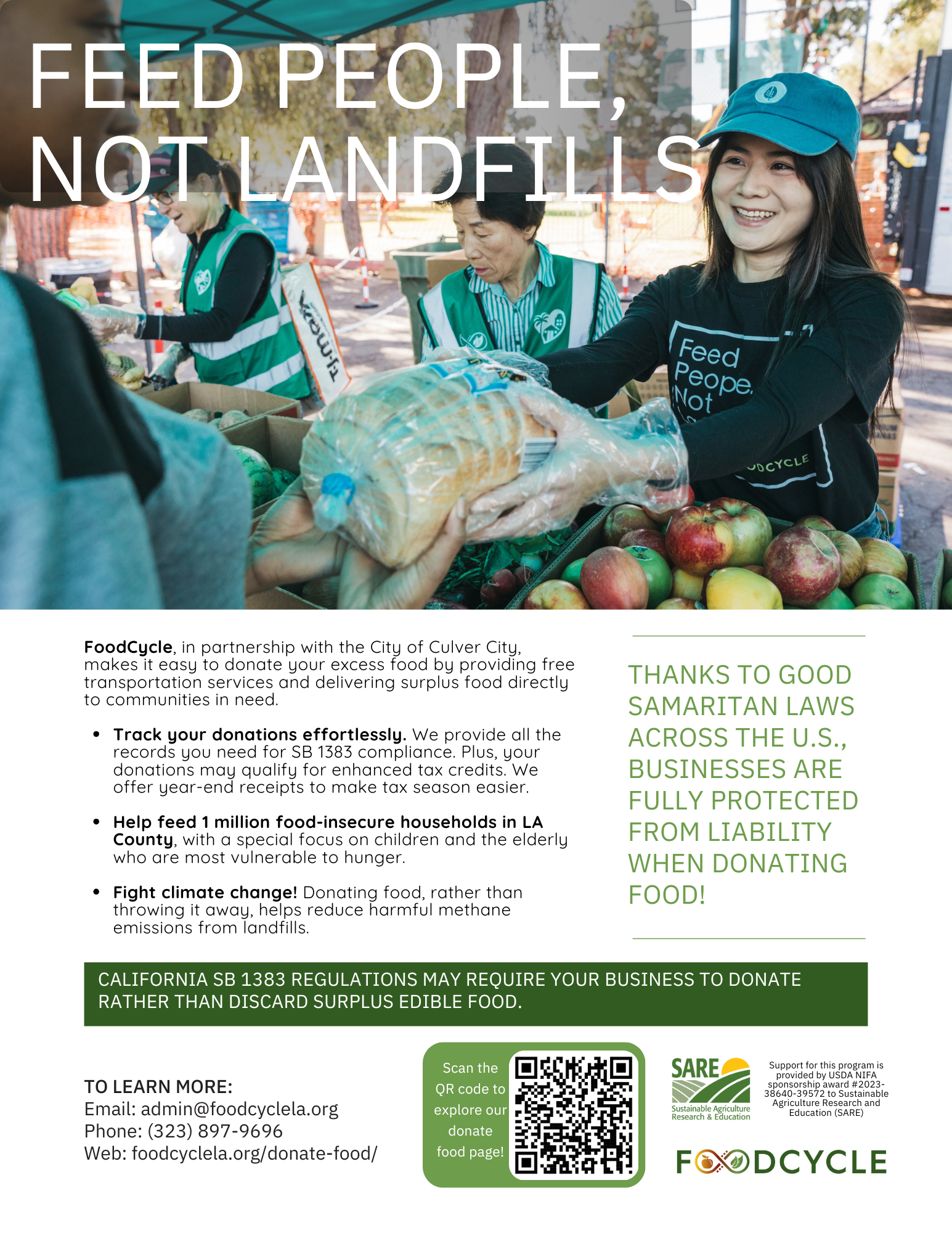 Outreach flyer to inform edible food generators about FoodCycle food recovery services