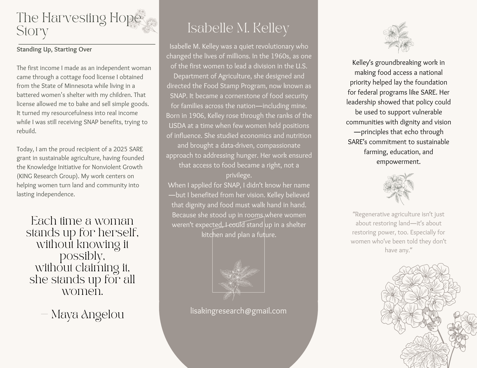 Trifold/handout introducing KING RG connecting SNAP, my resource for seeds, and SARE