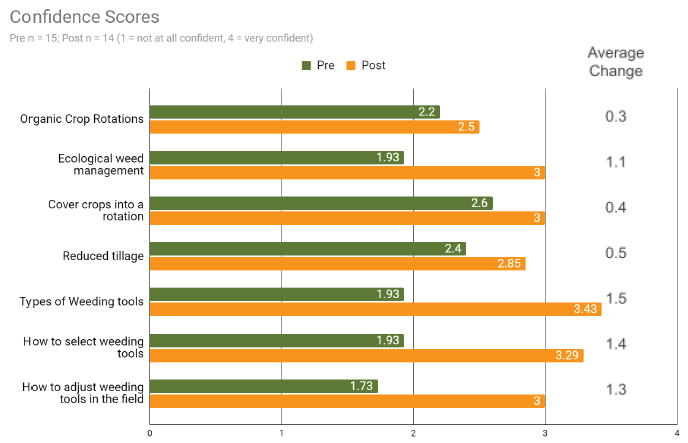 This event helped Ag advisors (Extension, NRCS, agronomists, non-profits) better understand and help farmers with weed management. Also farmers can learn about new tools, try new tools, and reduce the weeds on their farm.