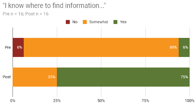 | TOPIC | BEFORE (1 not at all confident, 4 very confident) | AFTER (1 not at all confident, 4 very confident) |