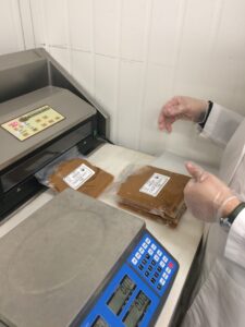 - Weigh the appropriate amount and place in pre-labeled freezer bags.