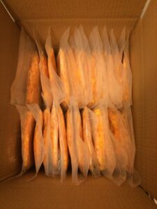 Market buyers paid a premium price for them and were happy to get them for smoothies and baking. The grocer was anxious to add locally-grown frozen fruit to her offerings. One of our coop members sent more strawberries than we could find customers for. They were not going to last long, so we froze those too. These went to the grocer.