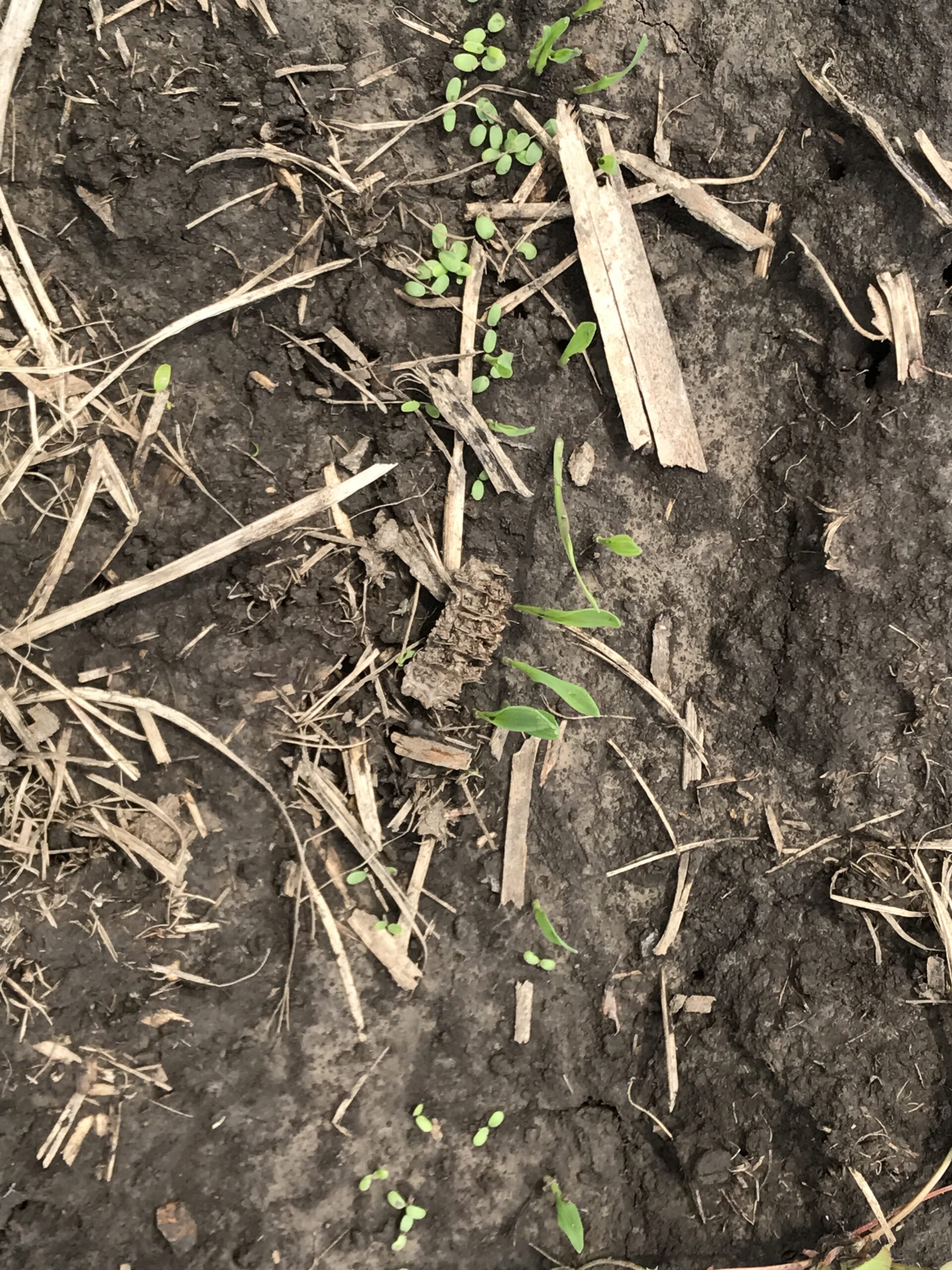 On May 19, the seeded mix in the 2020 Kura plot had emerged and was growing fast and uniform except for the tilled strips.