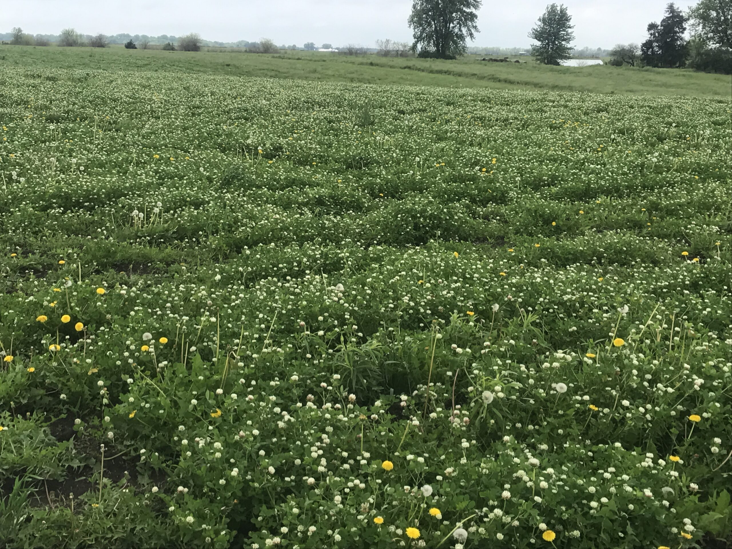 Having learned from NRCS soil conservation principles (https://www.nrcs.usda.gov/wps/portal/nrcs/detailfull/nd/soils/health/?cid=nrcseprd1300631) and innovative regenerative practices of the importance of multi-species diversity in cropping systems, especially cover crops, and the value of inter-species interactions above and below ground, I have modified the first objective to include other perennial low-growing species, notably bluegrass, dwarf white clover, dandelion, chickweed, plaintain, balansa clover, among other, to be planted along with the kura clover in additional plots while keeping the existing kura clover stand. Since the original budget did not call for the additional species, I will pay for the seed out of pocket.