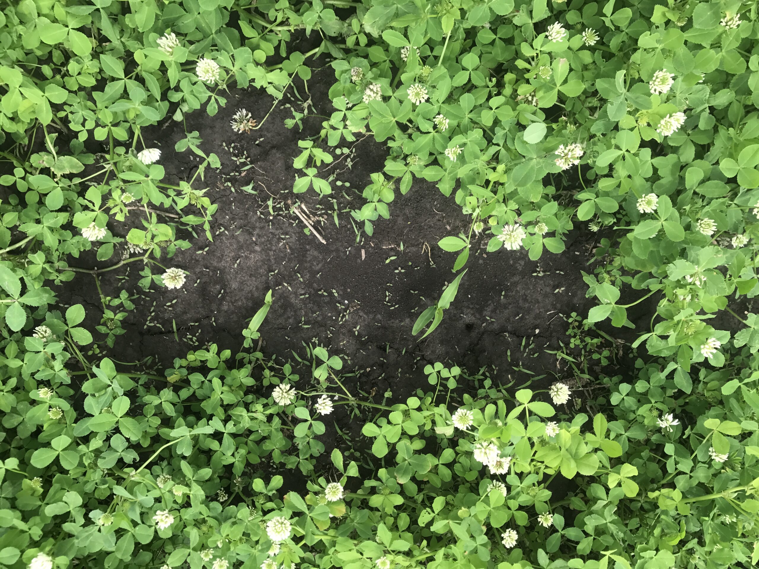 Twenty pounds of Kura clover seed along with species-specific inoculum was ordered through Prairie Creek Seed, Cascade, Iowa in early spring of 2019 (http://www.prairiecreekseed.com/). Prior to planting, the seed was also inoculated with a four-species blend of mycorrhizae obtained from Sustainable Ag Technologies (https://composttea.com/), adhered to the seed with water, organic molasses, and a dilute compost tea extracted from fresh bacterial/fungal compost of a Johnson-Su bioreactor (https://regenerationinternational.org/bioreactor/).