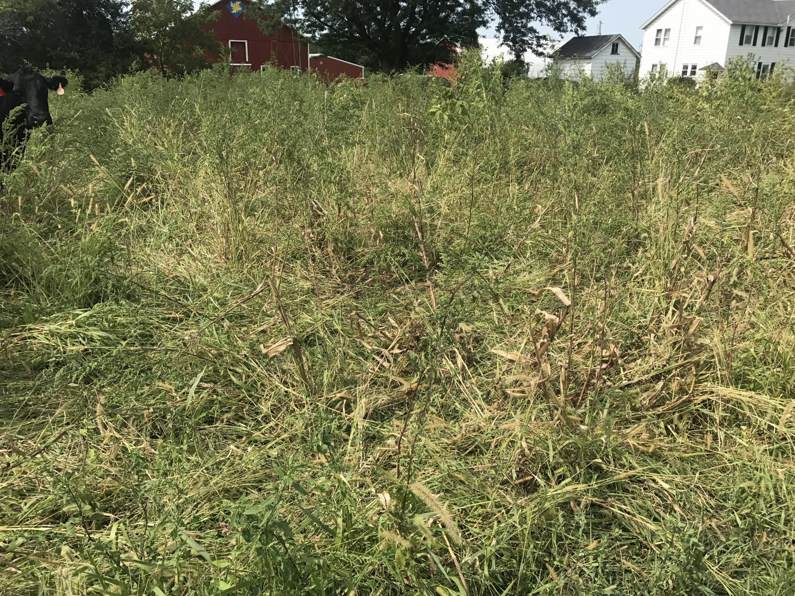 On July 14 I rented a 27-inch weed mower to manage late weeds in the 2019 Kura plot. The mare's tail was head high and dense. The corn in the 2019 plot had not matured, few ears developed. Delayed weed management due to tractor and crimper problems early in the season without a backup management plan created even more problems later in the season.