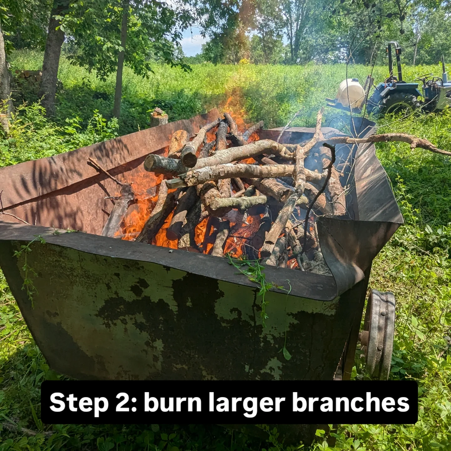 While most outreach activities are planned for 2026, I did make an Instagram post about my biochar setup in 2025. This included a series of pictures showing how I used a steel wagon with steel wheels as a biochar kiln that could be moved with a tractor for easy access and distribution. It also included a breakdown of my labor hours for that day.