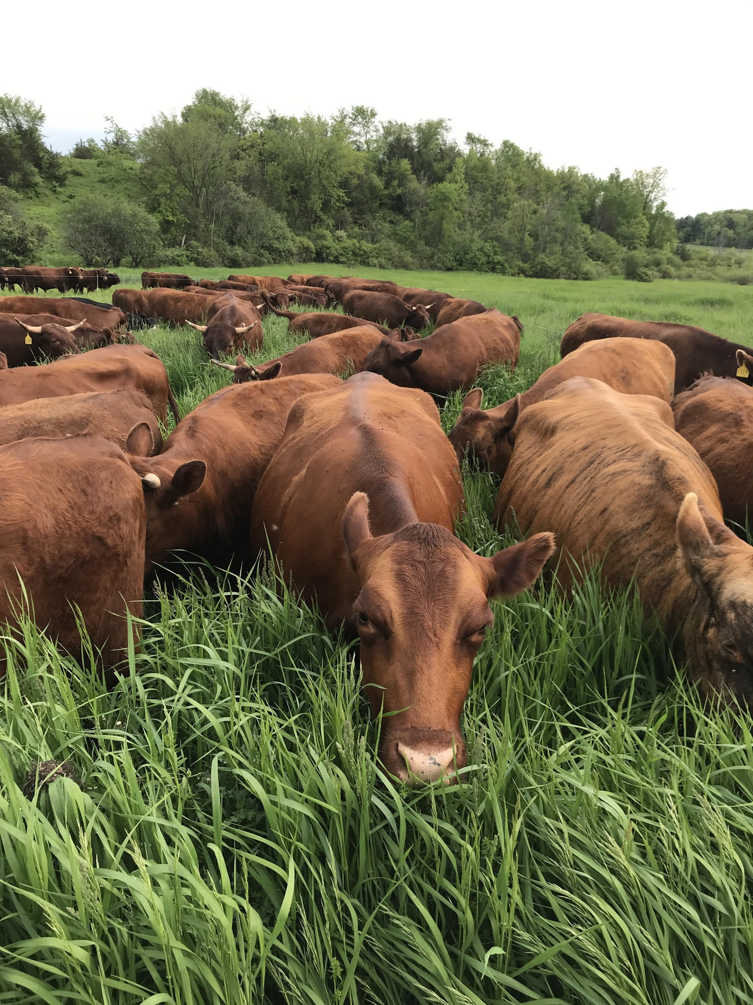 Throughout its 10 years, Bread & Butter Farm has practiced MIRG with beef cattle for agroecosystem regeneration on its 143 acres of land permanently conserved through the Vermont Land Trust - land we have seen soil, pasture, and surrounding ecosystem health flourish in correlation with our MIRG practices. We now manage a total of 600 acres of owned and leased land that was historically intensively hayed and cropped or continuously pastured; as a result, inherited soil health is poor and pasture productivity low. With our expanded lands, we want to seize the opportunity to supplement our anecdotal observations with data that clarifies and confirms the interaction between MIRG strategies and regeneration of degraded land.