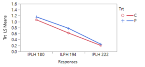 Positive effects of pyrethrin treatment were observed on several measures of hop productivity. Here we report the general patterns based on a general linear model analysis of hops plant mass (kg) and hops cone wet mass (g) from six plants per treatment. In general, the experimental blocks differed as expected with cascade blocks having higher mass of both cones and plant than other blocks (varieties). In some cases treatment with pyrethrin versus control was significant in favor of higher masses of hops and plants for pyrethrin treatment (2021), but was only marginally significant (p=0.054) for plant mass in 2022 and not significantly different for hops mass in 2022. Location (interior versus field edge) also differed consistently with interior plants and hops samples higher than exterior samples (p<.05 in 3 of 4 cases). In the second, 1-acre field where we sprayed the entire circumference in 2021 and sprayed the entire field in 2022, we found significant differences between varieties (Cascade > Nugget), no effect of year, and during both years both hops and plant masses were higher in edge versus interior samples. Given the differences in pyrethrin spraying patterns between yards opposing results for plant mass and yield by location (edge versus interior) may be related to pyrethrin treatment. Overall there multiple pieces of evidence that pyrethrin treatment has positive impacts on yield.