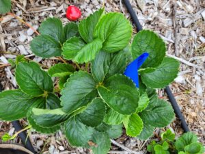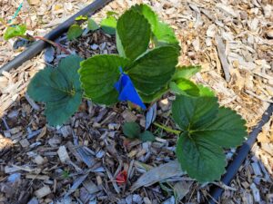 1st section: 50 San Andreas strawberries, used for control, blue flags