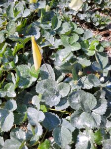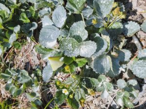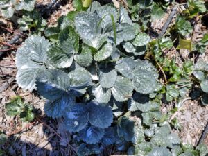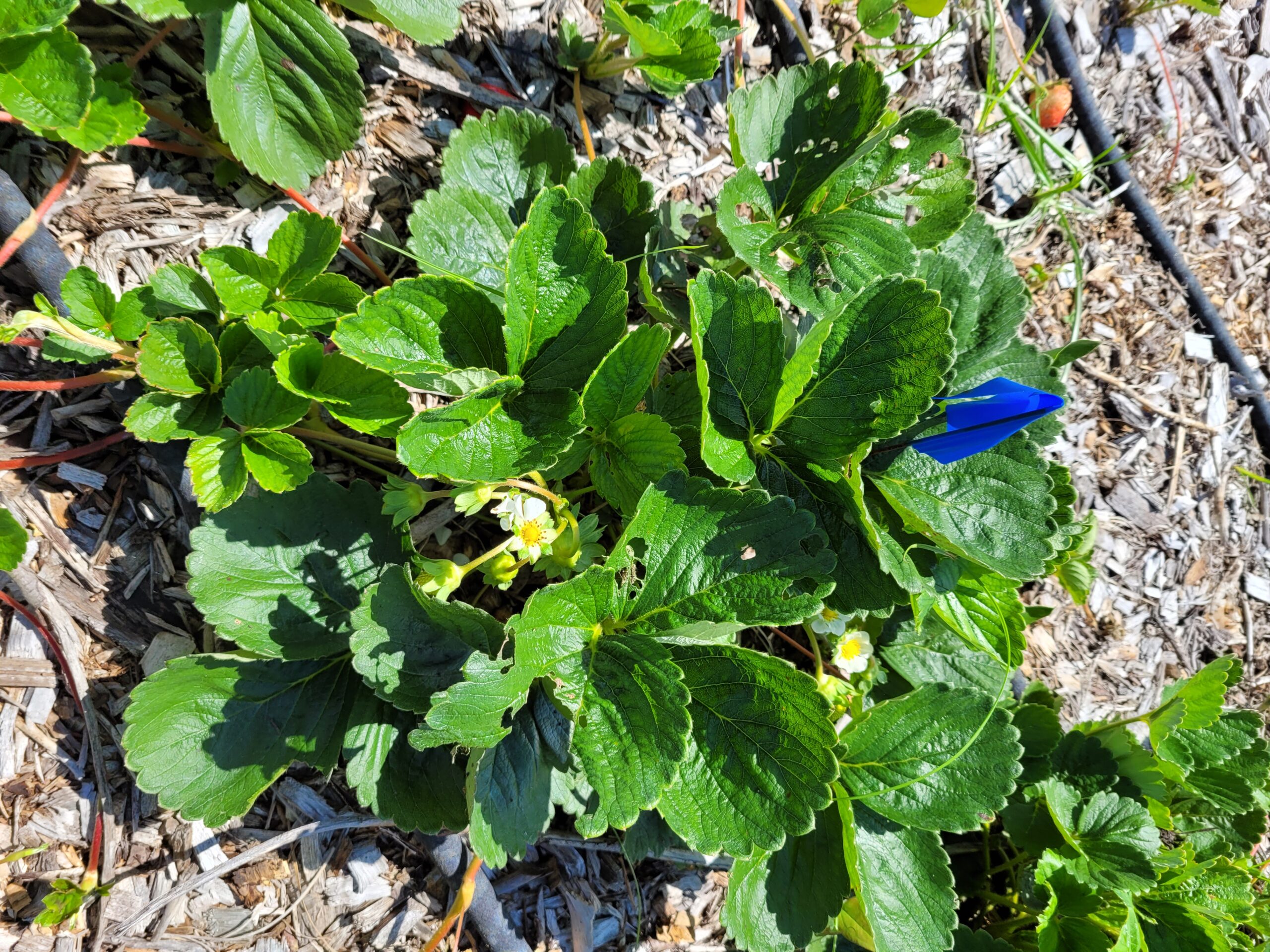 5/31/2022 The strawberry plants look good and are growing well. Several strawberries are at maturity and most plants have flowers and/or berries. The Seascape plants continue to grow larger than the San Andreas variety. Kaolin foliar spray applied to leaves and berries of each plant in Sections 3 and 4.