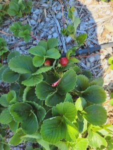 6/13 Birds may be pecking at strawberries. Will add more painted red rocks