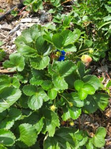 5/31/2022 It was observed that the marigolds planted in each section appear dry and do not look well. Several grasshoppers were observed eating the marigolds. The strawberry plants look good and are growing well. Several strawberries are at maturity and most plants have flowers and/or berries. The Seascape plants continue to grow larger than the San Andreas variety.