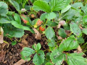 General observation: Plants and berry look very healthy and berries are tasty. There is no presence of mold. There is the occasional insect nibble from crickets. No Japanese beetles observed in strawberry area. Red leaves are diminished.
