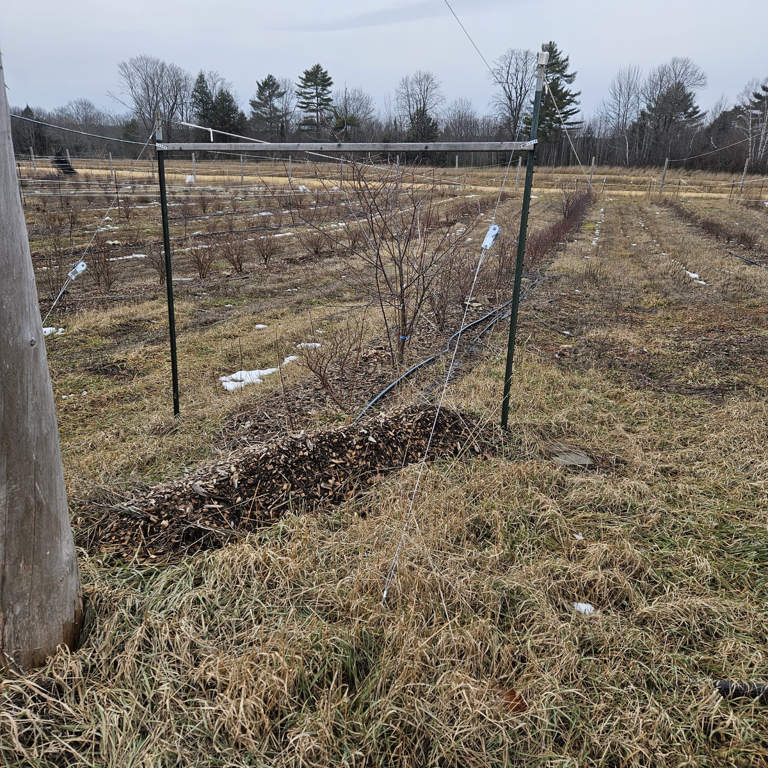 The goal of this project is to test and evaluate a novel trellis system for excluding birds and spotted-wing drosophila from perennial berry crops, and to collect field data to support the project's conclusions. Data collection was proposed to begin in 2024, but design troubleshooting and the reality of the farm's production season led me to focus on construction alone last year. At this point, all the infrastructure is in place for installation of the netting this spring, but some adjustments are needed that will be discussed later.