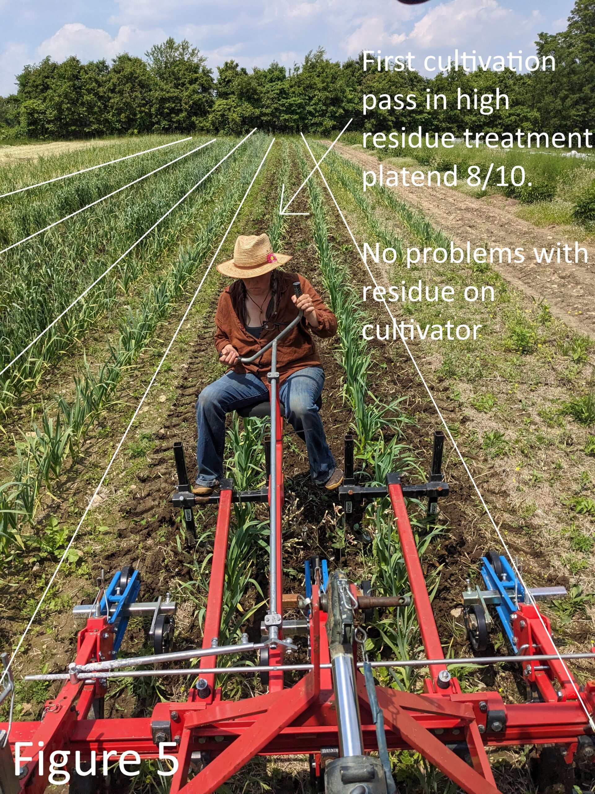 We showed that no-till planting into cover crop residue is not only possible in mechanically cultivated garlic, but that increased residue is beneficial to soil health and crop yield when using such cultivation methods. In 2025 there was an unusually wet spring. Cultivation was only possible on the high residue treatments, which was an unexpected benefit.