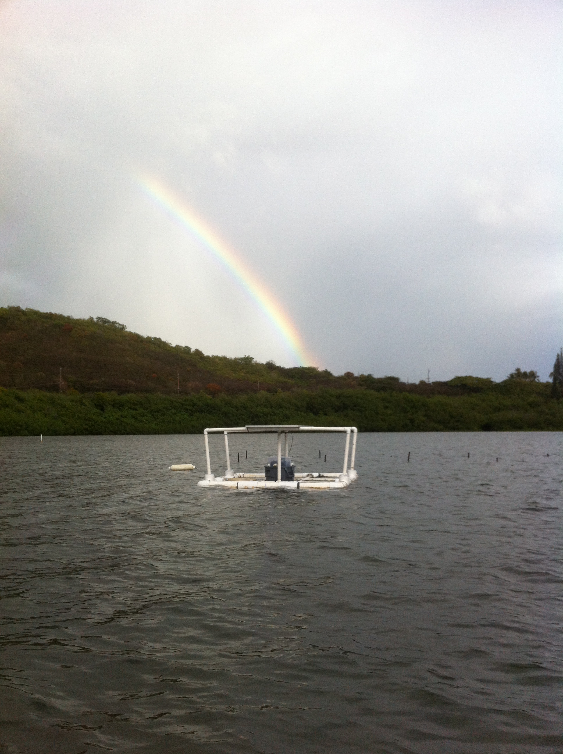 A complicating factor is that most of the prospective oyster farmers in Hawaii do not have electrical power in their farming areas. The configurations of the ponds and surrounding sites, particularly the large extents of shallow water, inhibit use of conventional setting systems. Moreover, electrical costs are among the highest in the nation. Hence, if a FLUPSY is to be used in Hawaii, an alternative source of power is needed. The goal of this project was to design and test a solar-powered FLUPSY that would effective in the unique settings of the Hawaiian fish ponds.