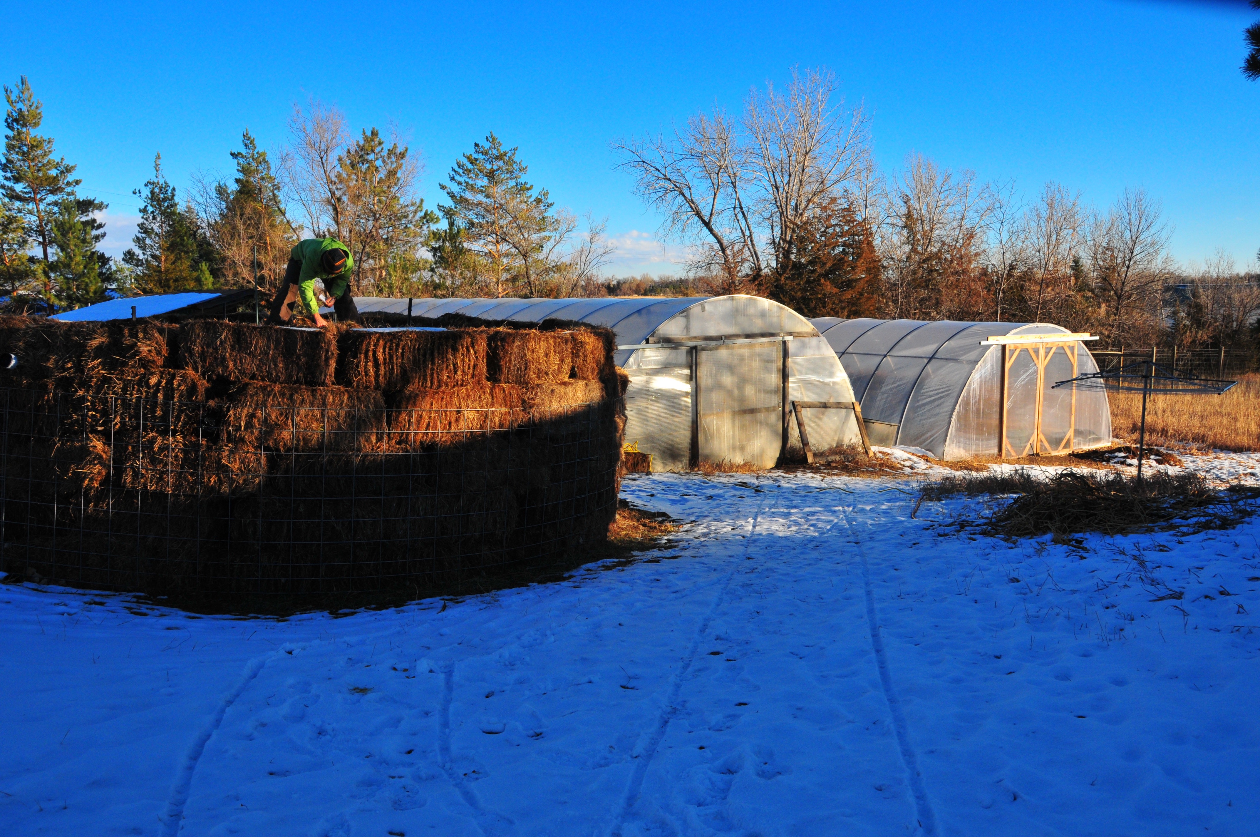 Large amounts of quality compost can readily be generated for on farm use with compost heater materials (woodchips, saw dust, manure, and hay bales [for moisture retention and insulation]) without active aeration.