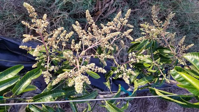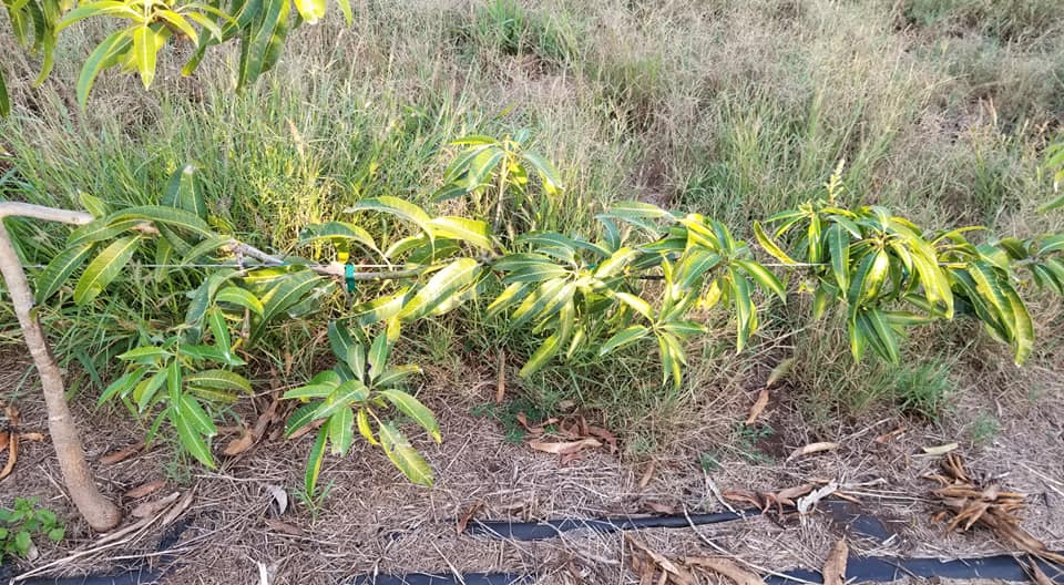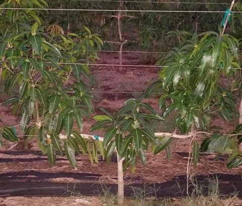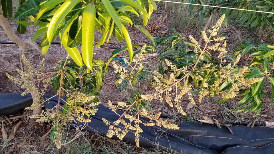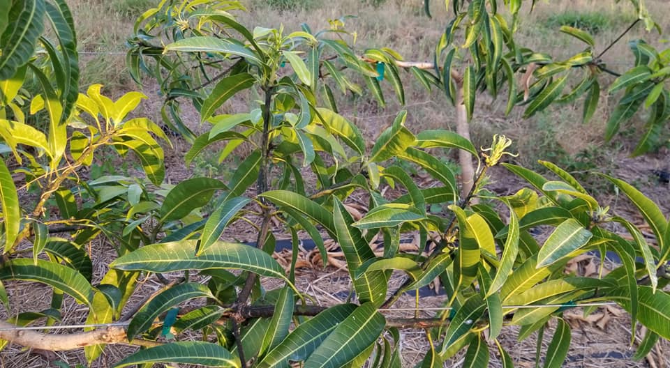 The otts field was planted from January to April 2019 and the trees have been in the ground for 20 to 24 months. The focus over the last 12 months has been to continue training the branches laterally onto the trellis wires and establishing sub-lateral branches, which is where the majority of flowers come from. There are mainly four varieties in the field; white pirie (180), Nom dok mai (60), Keitt (50), Rapoza (10). Aside from Nom dok mai, a semi-dwarf tree, most of the trees have reached the fourth wire and have completely filled in the first two wires laterally. It is expected that most of the trees will have filled in the entire trellis by the end of the third year. At least half the trees are flowering.
