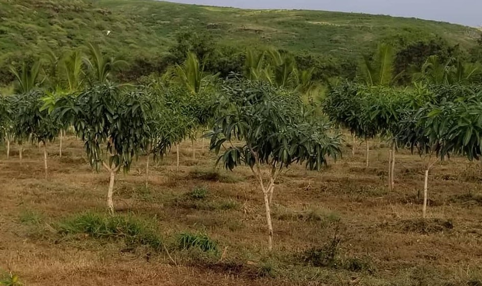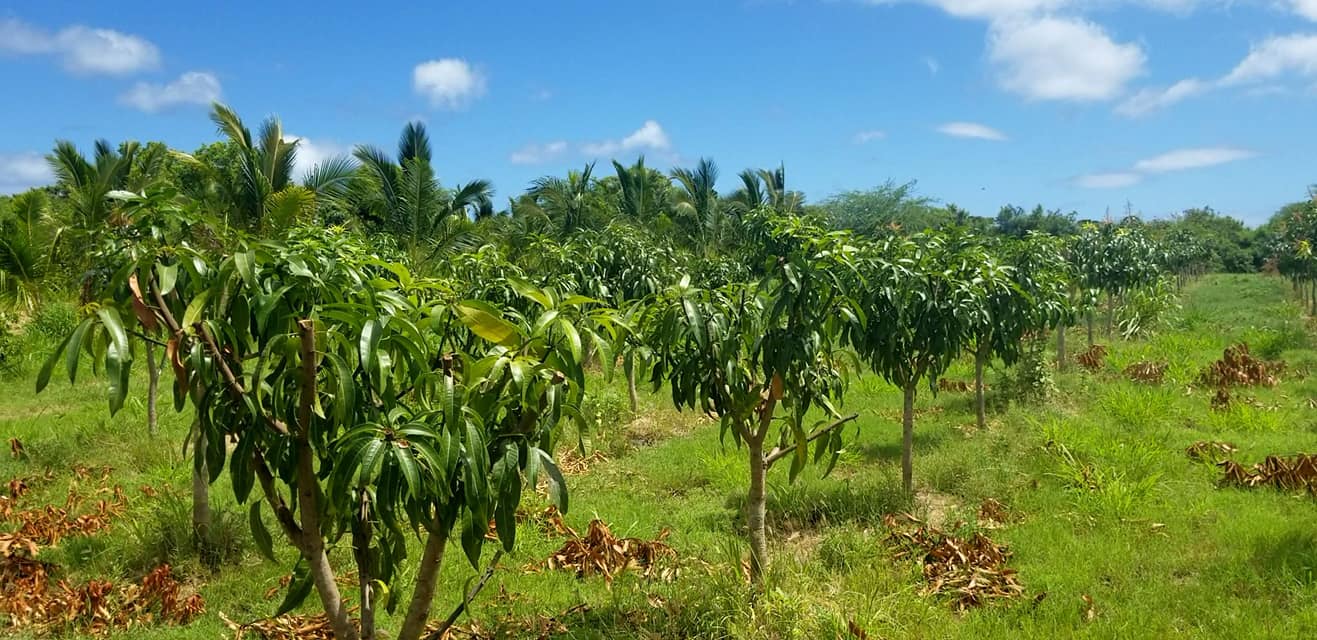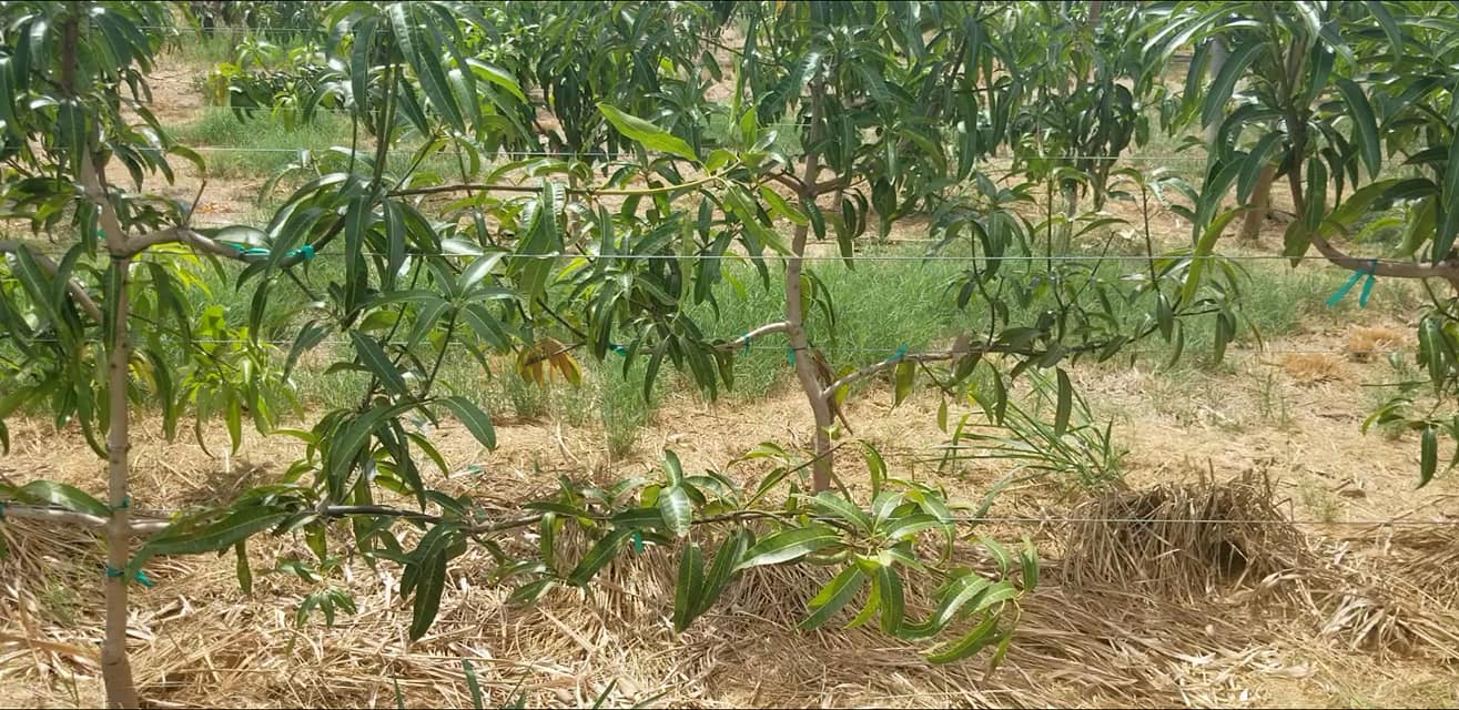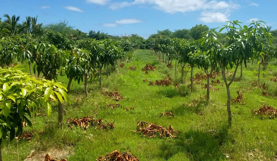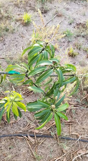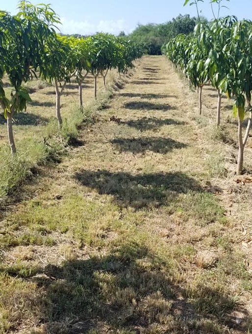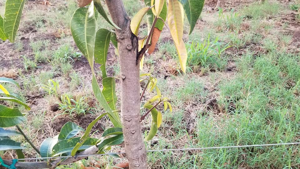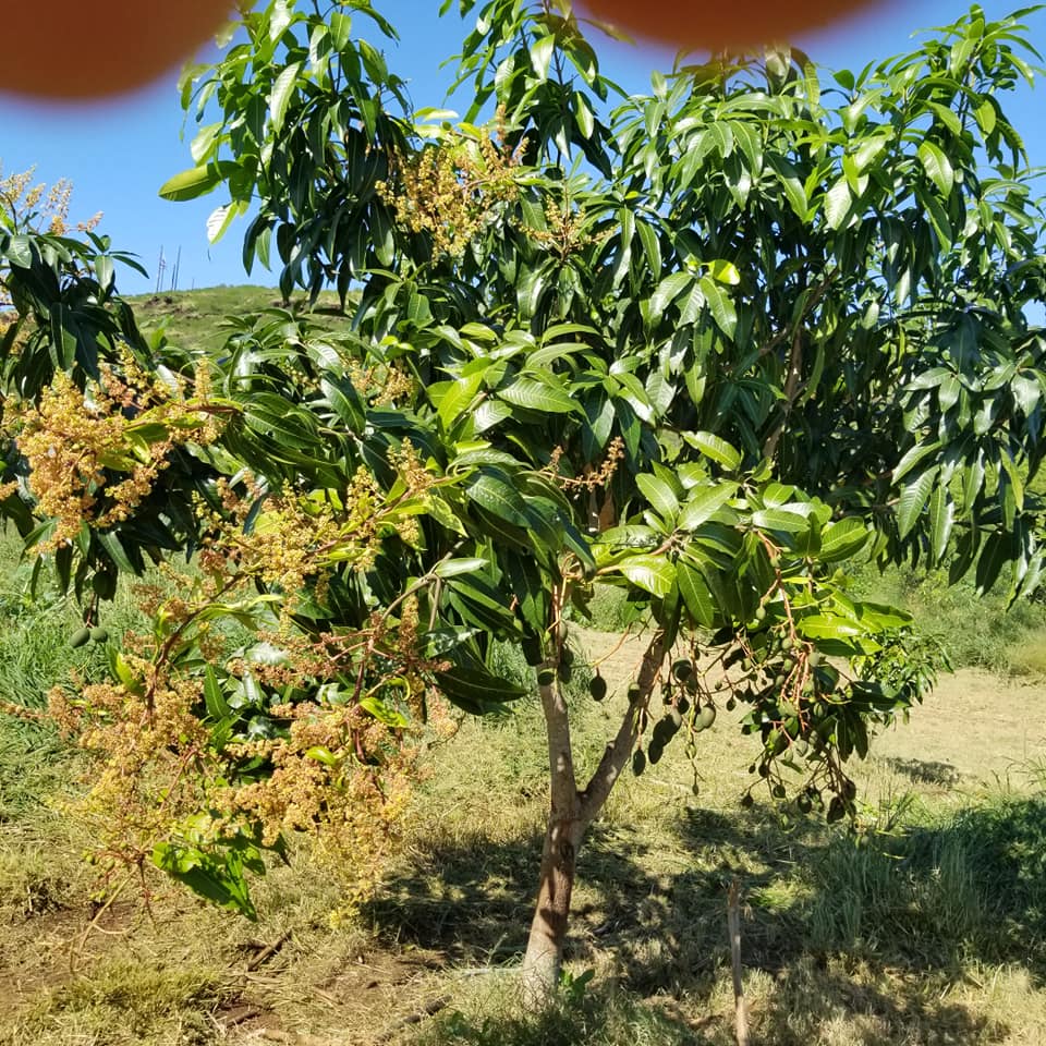 Year Three : Ultra High Density Plantation (UHDP) The uhdp field was planted between November 2017 to May 2018, so the trees have been in the ground from 30 to 36 months. At this point, 200 trees are at the desired height and size and are ready to bear fruit; another 50 trees are shorter or have a less developed canopy, but are still going to be allowed to flower and fruit; and another 50 trees are not ready to bear fruit. The trees that are not ready for fruiting are younger trees that have replaced dead trees, or have been damaged and need to regrow its' canopy. The trees that are full size are now managed according to its' growth cycle. One major pruning, to reduce the size of the tree is conducted directly following harvest. It takes 5 to 6 minutes per tree to prune and tip and this is an opportunity to apply nutrients. Mango trees have a short dormancy, usually in early winter, followed by a flush of flowers. This is another moment to apply nutrients important to flowering and fruiting, and fungicides to protect against Powdery mildew and Anthracnose. Harvest begins in the Summer through the Fall depending on the variety or when it flowered, and takes 6 to 8 weeks. Here is a video on the third year, and here.