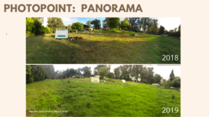 Photopoints were taken at the beginning and end of the experiment. Overall, improvement of grass coverage and production can be seen when 2019 is compared to 2018 in the photos. Taking each photopoint one by one, we can discuss a few interesting observations that came up in these images.