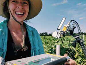 Based on modeling findings, an increase in the temperature of the leaf is negatively related to Vcmax, meaning that as the temperature of the leaf rises, Vcmax declines (Figure 5). This finding is especially important when continuing to plan for climate change. As the number of days above 90 degrees increases, we can expect potato production systems to experience greater heat stress, lowering Vcmax and possibly resulting in a decline in yield. One additional connection to increasing heat is a corresponding increase in water demand by the plant, which may drive the need for more frequent irrigation, placing increased demand on water and energy resources to maintain production levels. As the agricultural sector continues to face ongoing climate change, it will be critical that current practices are adapted or re-evaluated entirely.