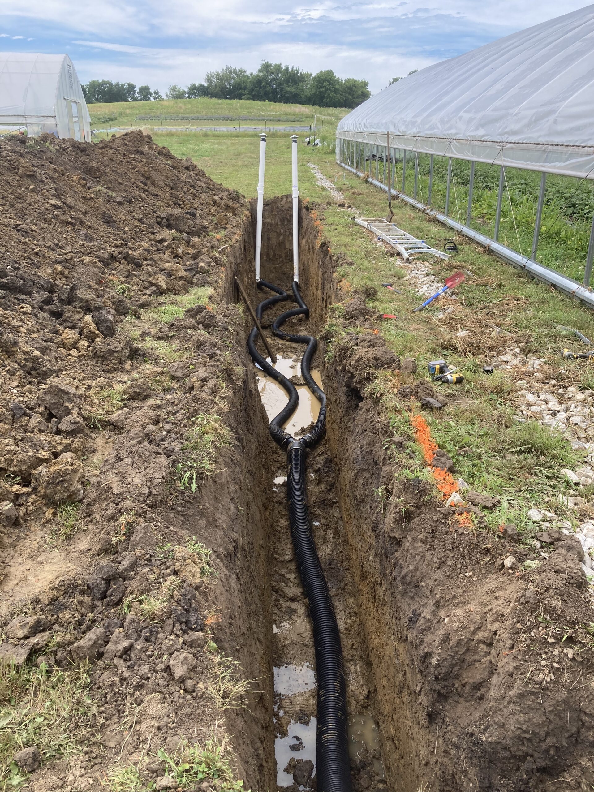 Through this grant and others received from the Ohio State University that built on this project, we had a chance to learn more about building EAHX systems in 2 different on-farm contexts. Installing one shallow geothermal system in a rural area, we met challenges like running into buried clay pipe and the challenges of getting electricity to high tunnel built on farmland. With our urban partner farm, we also had electricity limitations which we were able to overcome with a standalone solar PV-battery system.