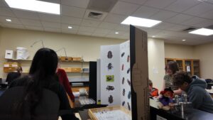 We created and hosted a dedicated dung beetle outreach booth at the Dr. Linda Butler WVU Insect Zoo Halloween Event at West Virginia University. This event reached over 400 participants, including WVU students, members of the general public, school-aged children, teachers, and professionals, including farmers. Attendees were educated about West Virginia pasture dung beetles, their ecological importance, and the goals of the Northeast SARE-funded project focused on breeding native and/or locally adapted dung beetles. Outreach materials included informational posters, interactive quizzes, a dung beetle specimen collection box, and two dung beetle-themed games. Participants who completed activities received WV dung beetle stickers.