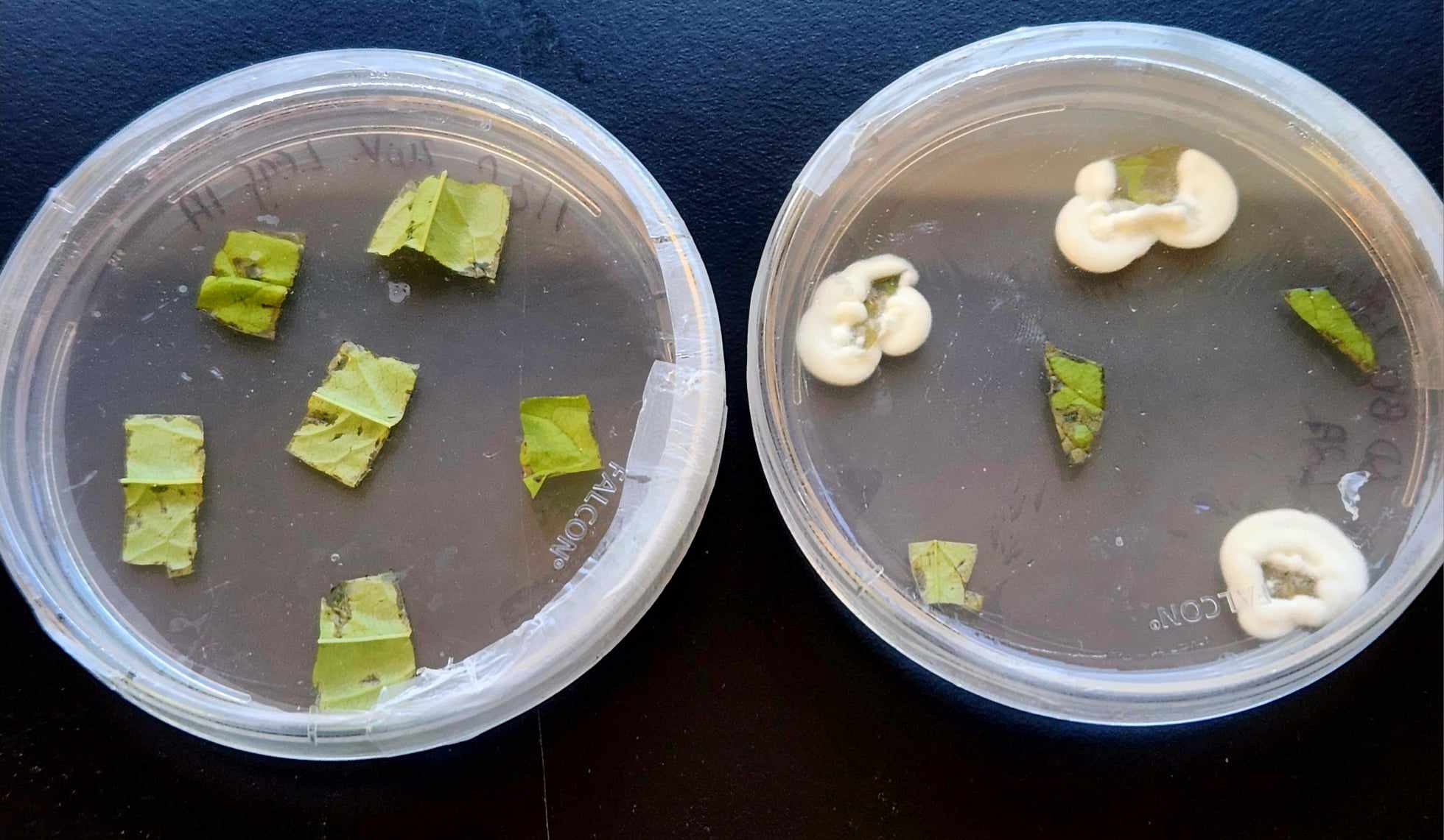 Plating: Trim tissues edges, cut into ~ 4X4 mm pieces, plate on DBT media (selective media to grow B. bassiana); incubate for ~ 14 days in the dark at 25 °C.