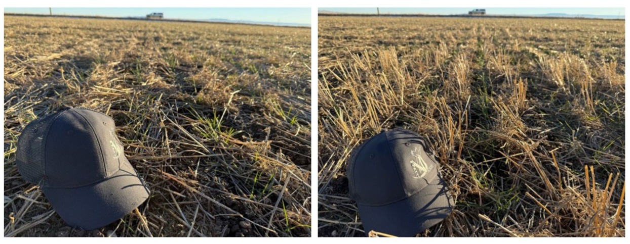 There were clear visual differences in soil coverage for short vs. tall stubble. Shown below in Fig. 3 are two pictures taken on 14 May, 2024, at Moccasin, MT following spring seeding. It is visually evident that tall cereal stubble increased residual crop biomass which can be expected to provide greater protection from wind erosion and provide adequate ground coverage following pulse crop harvest. It is also noteworthy of the potential benefits of soil erosion protection by an increase in basal pod height.