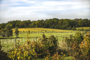 The Fields Restored silvopasture experiment seeks to understand the value of establishing “islands” (groupings) of trees into actively grazed pastures. These tree islands are common to pastures in Europe but have not been employed in the United States. This experiment includes two island sizes and five combinations of native trees and shrubs. This experiment seeks to explore how this silvopasture design can increase biodiversity, support wildlife and pollinators, produce a salable product, and provide shade and other benefits for livestock. These islands will be monitored by interns who will collect data and monitor livestock interactions.