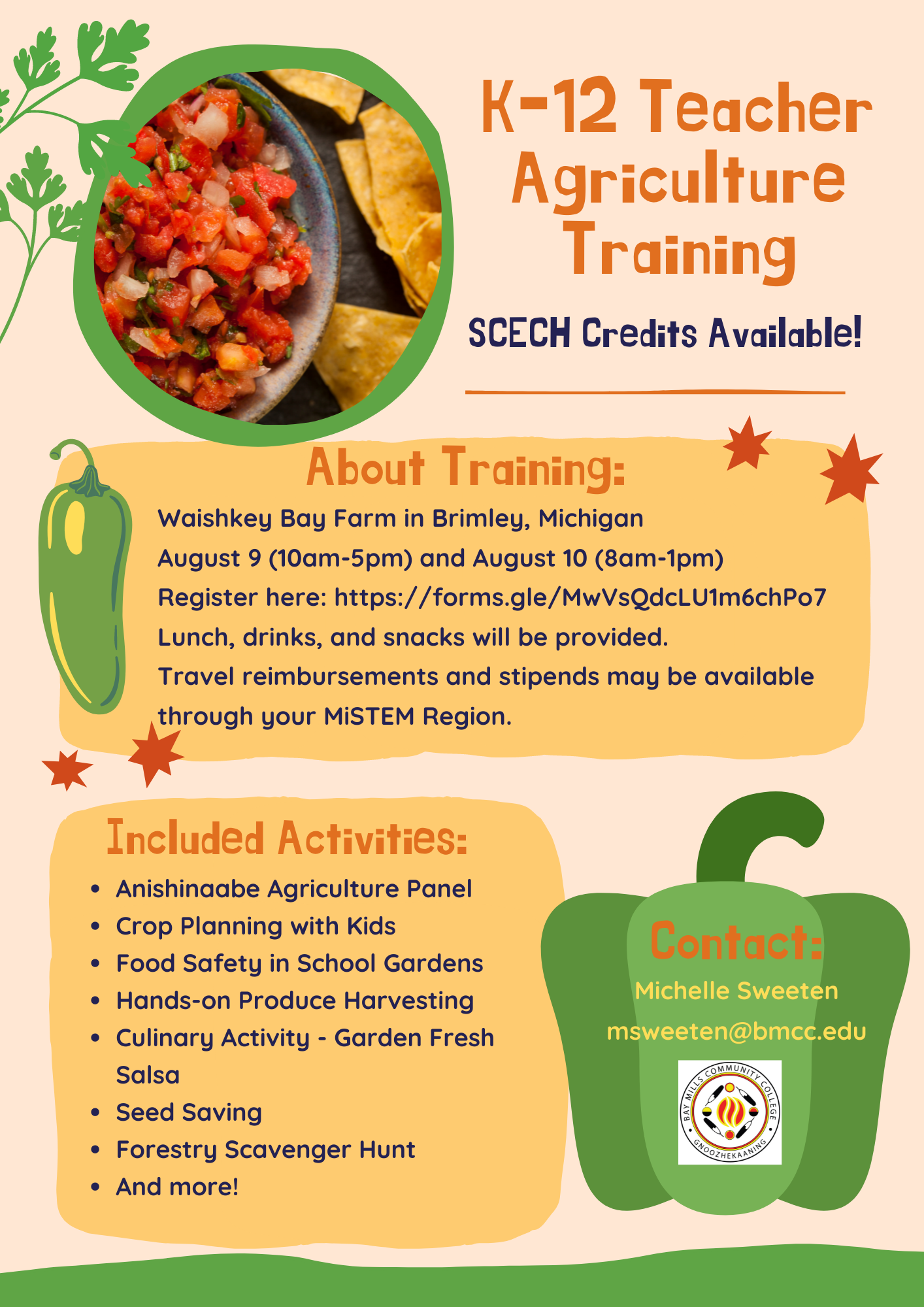 In Michigan’s EUP, there are no FFA programs or agriculture educators in the K-12 schools; local schools and the regional ISD currently lack the capacity to develop sustainable agriculture curriculum. Bay Mills Community College, and its partners, propose the development and implementation of a Indigenous science sustainable agriculture curriculum targeting middle school students and partners with local agriculture interests to provide regionally relevant, classroom, and hands-on learning opportunities. Additionally, we propose K-12 teacher professional development targeting sustainable agriculture concepts for their classrooms.