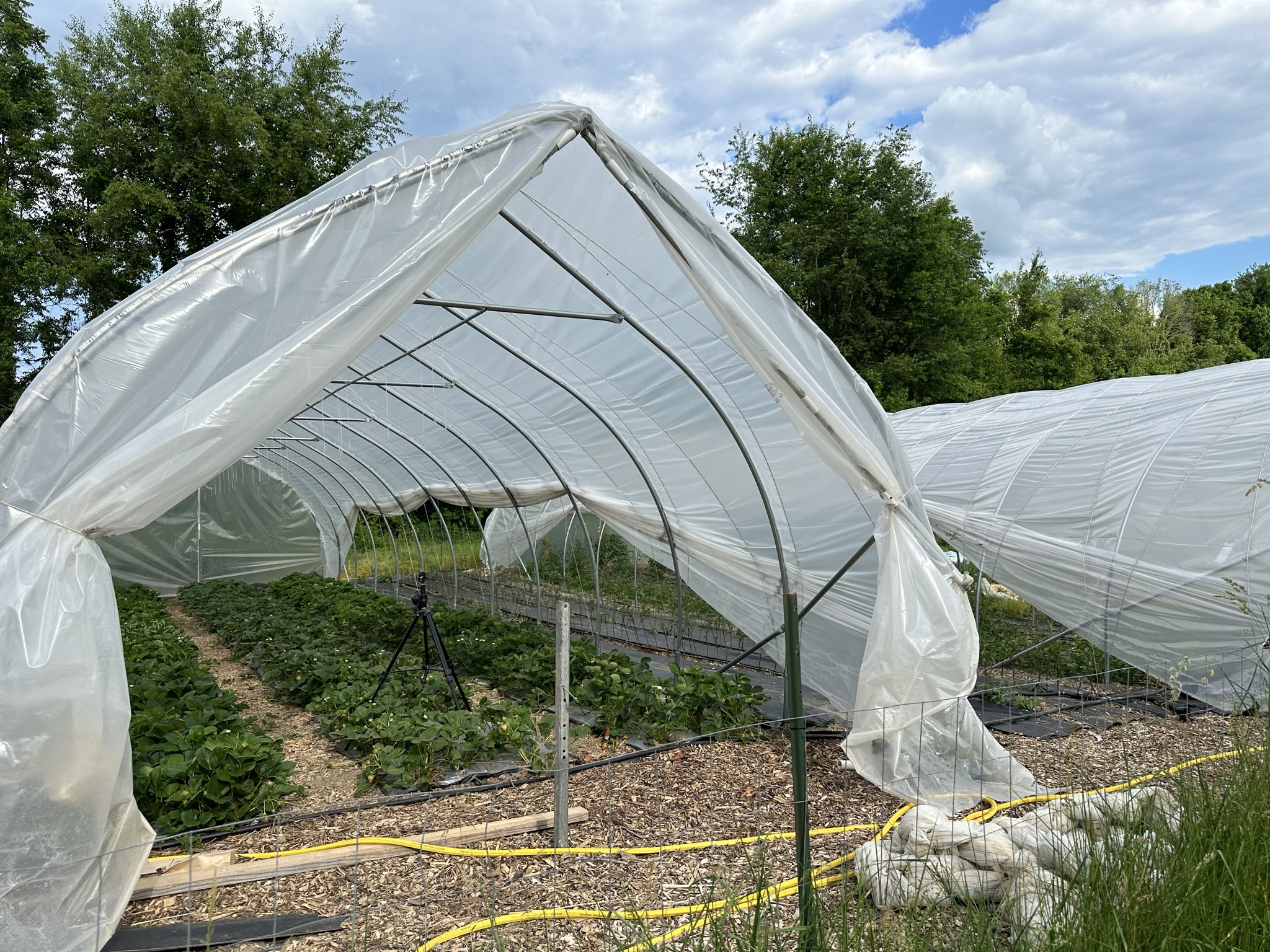 High tunnels, which are unheated, plastic‑covered structures, offer an intermediate level of environmental control. They protect plants from rain and wind, increase heat accumulation, and provide moderate frost protection. High‑tunnel production reduces weather‑related risks and can extend the harvest season. Although strawberries are one of the most common high‑tunnel crops in parts of Asia, their potential in U.S. high‑tunnel production systems remains limited explored. Our preliminary studies on soil‑based high‑tunnel strawberry production showed promising results but also highlighted key questions related to cultivar choice, planting dates, pest management, and winter row‑cover strategies. We conducted a series of experiments to address these needs and refine the system.