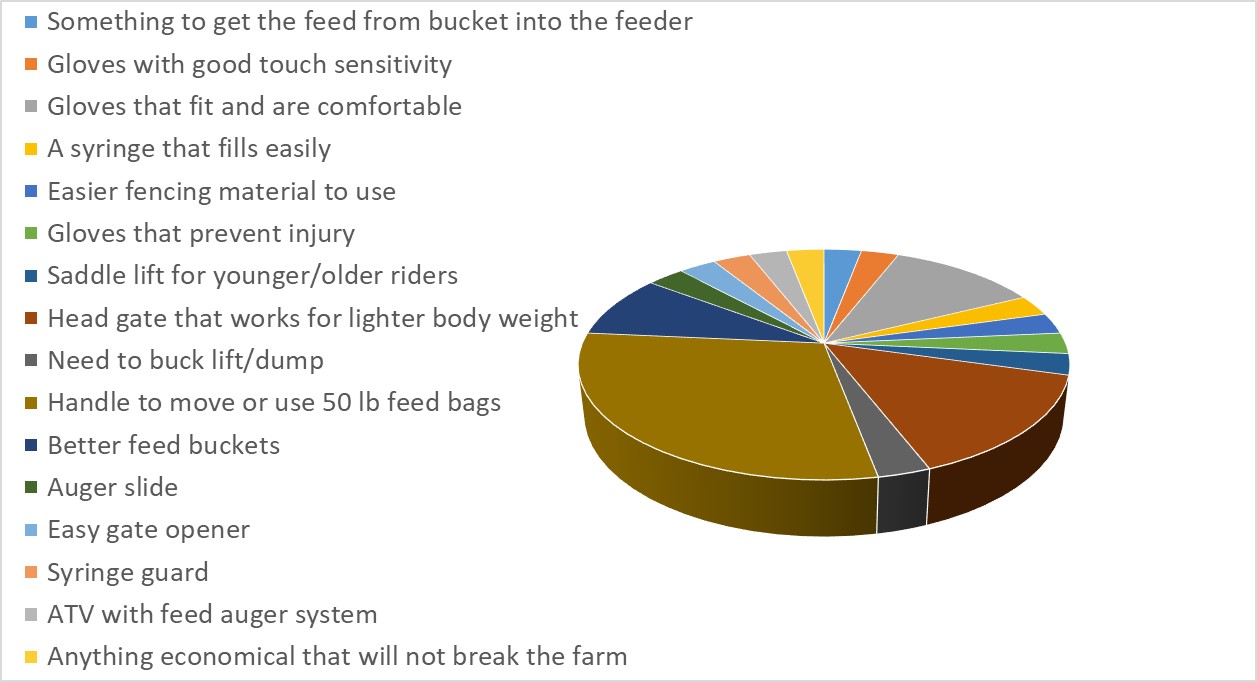 - Available ergonomic hand tools, long handled tools, livestock tools and other tools of interest to women producers