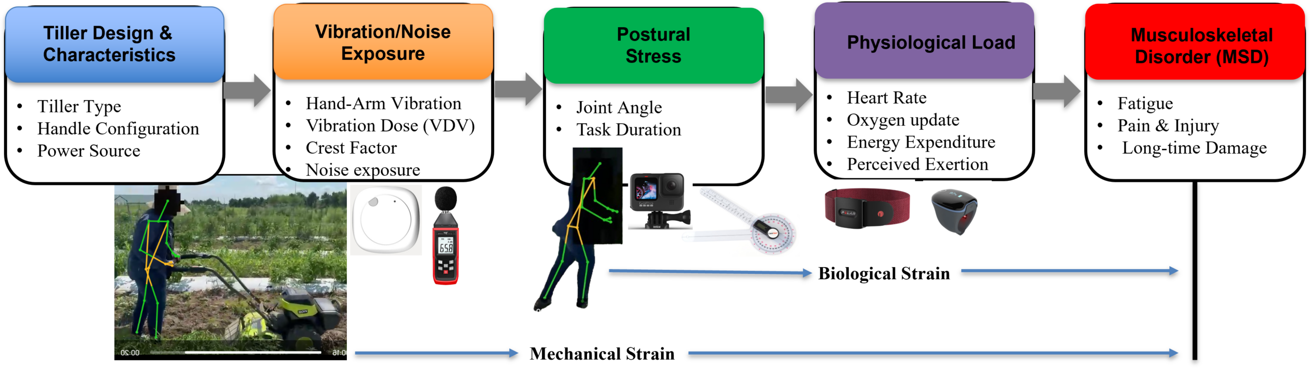 The research used a holistic and interdisciplinary approach with a repeated-measures design. We started the research by collecting intensive inputs from farmers, extension specialists, industry representatives and professionals in farming sector through surveys, focus group meetings, on-farm demonstrations and workshops/meetings. Computer designs and prototypes were tested by women users and producers through scientific experimental designs. Digital sensors and artificial intelligence (AI)-enabled algorithms were used to assess the ergonomic features of each developed tool and equipment. Research outcomes including physiological load (heart rate, energy expenditure), posture (video-based motion analysis), vibration, noise, and soil performance were analyzed and used to develop next-generation tools. Peer-reviewed research papers were published and available to broad audience.