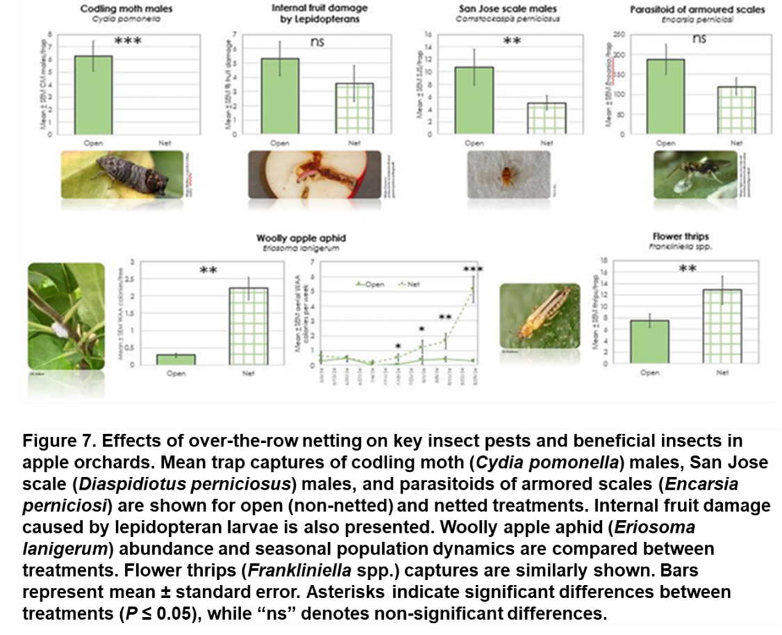 - How whole-tree anti-hail, insect-exclusion netting systems influence pollination and fertilization in apple orchards.