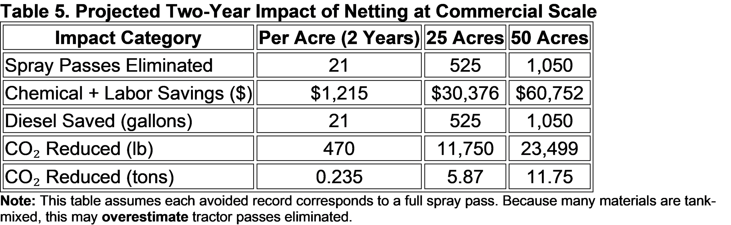 - Labor savings: using an estimated $33 per acre per spray (mixing/loading/operation/cleanup).