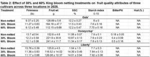 - Impacts of netting on fruit size, quality, and overall orchard productivity.