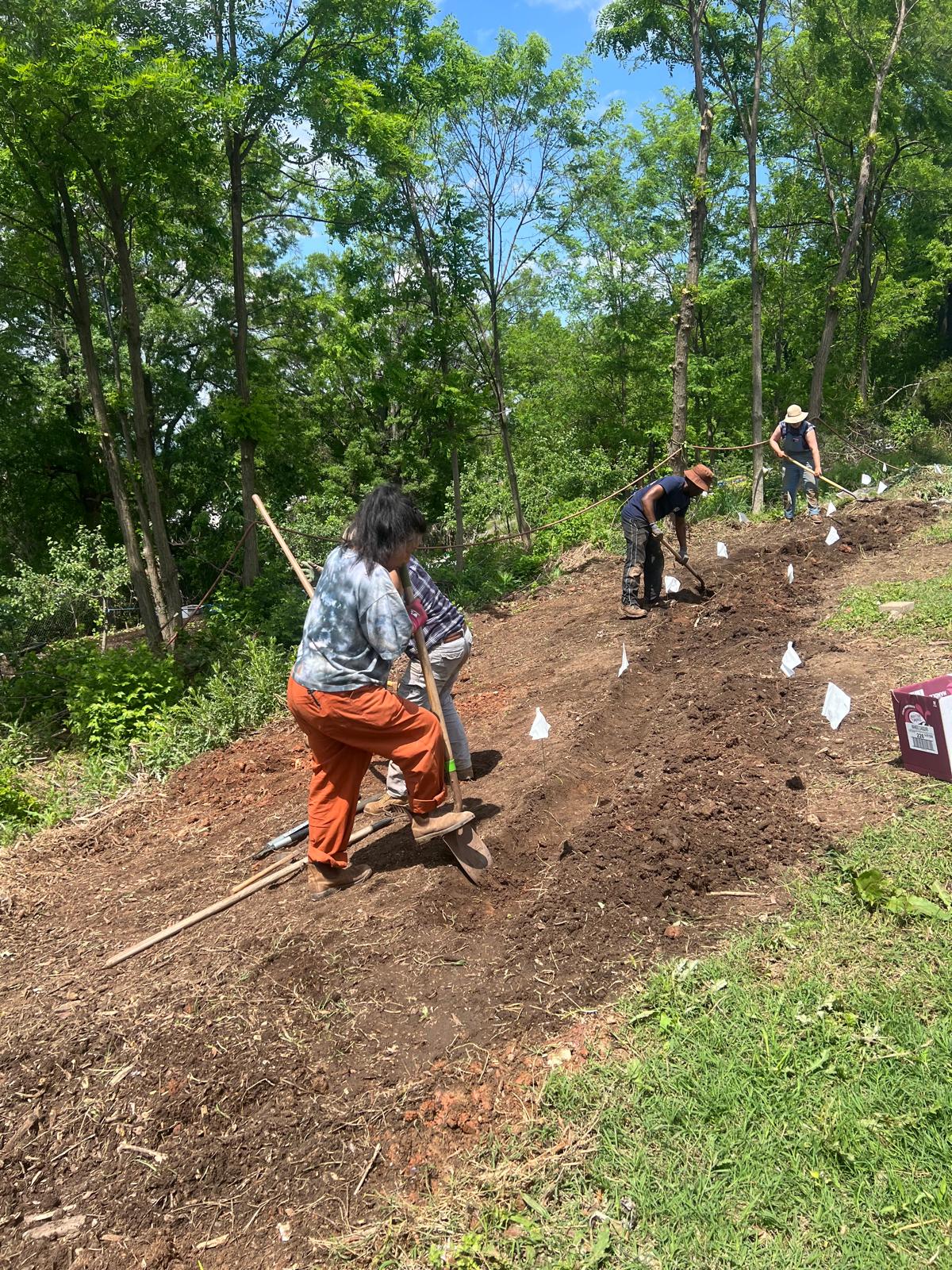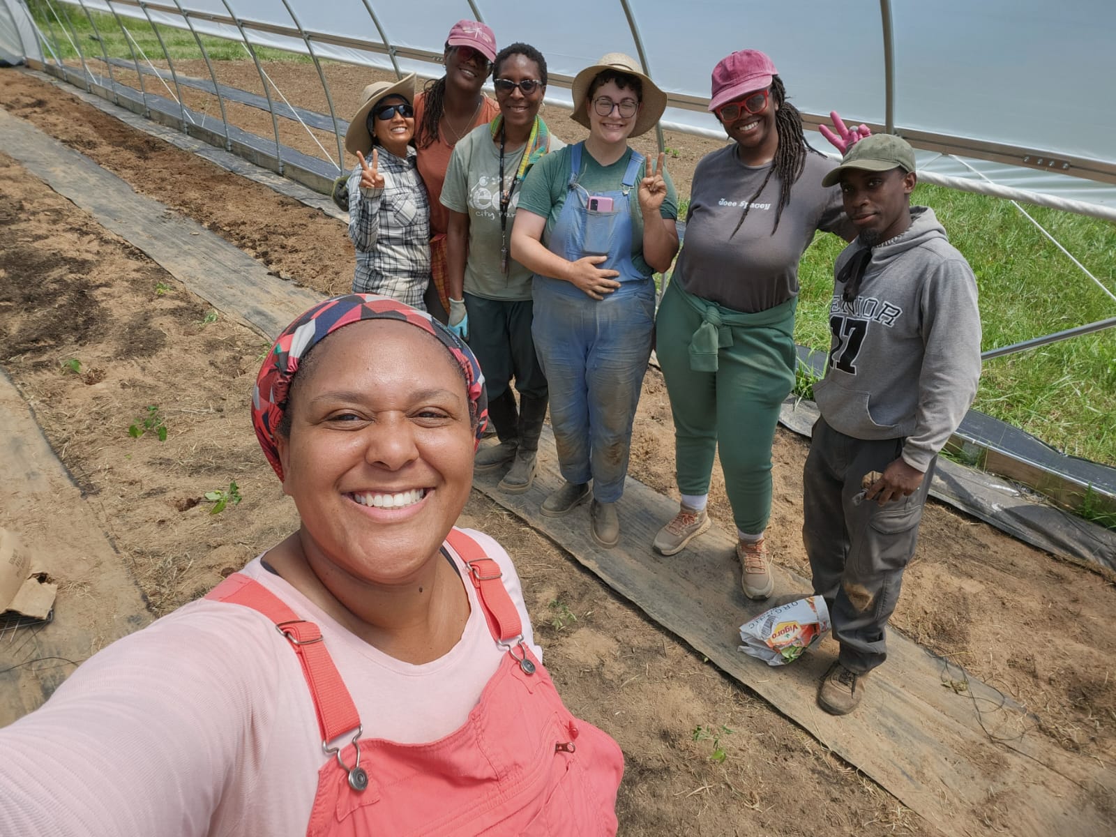 All 2025 apprentices participated in a new learning initiative in the apprenticeship called the Many Hands project. This project was designed to offer BFTP graduates and Urban Farm Incubator (UFI) farmers the labor support of the entire apprentice team on whatever task the farmer needed help with; it was also designed to expose apprentices to a variety of farms and management styles. Apprentices worked at 6 different farms over the course of the season (including Ugat Urban Farm and Meemaw Organics, two of the apprentices' farms). The farm manager and apprentices would switch out a 4 hour shift at ECO for working at one of the Many Hands identified farms instead. Apprentices had the opportunity to work on operations that grew different crops than ECO and used different management styles for those crops. Additionally, apprentices had the opportunity to network with different farmers and strengthen the community ties between different ECO BFTP alumni.