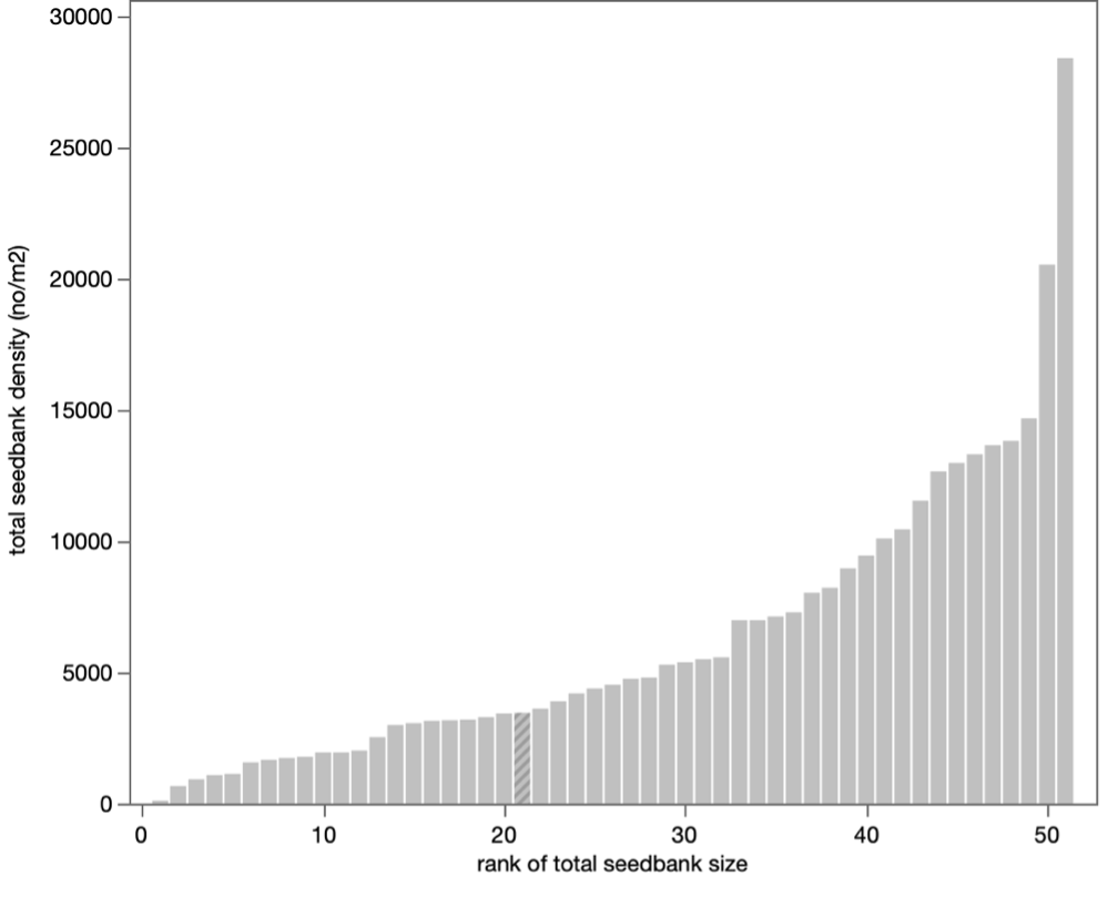 - COMPLETED. A bar chart with the total weed seedbank density of each participating farm organized by commodity (with the other farms’ identifying information removed).