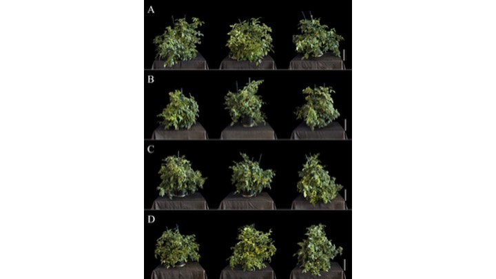 For study 4, tomato seedlings with four leaves were transplanted to 3-gal pots that were topdressed with 36g of controlled release fertilizer (15-9-12 Osmocote Plus 5 to 6-month formulation). Plants were grown and evaluated for 60 days.