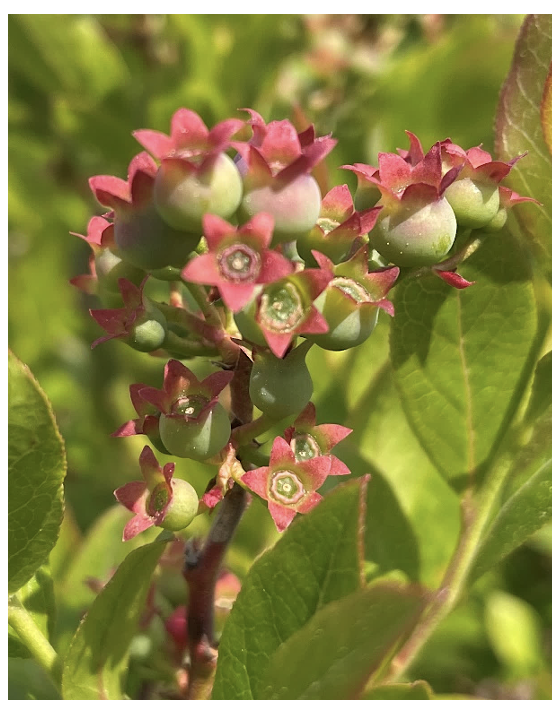 Three 0.37m2 quadrats were established within each plot, and within each quadrat, 4 stems were tagged for fruit counts for a total of 12 stems per plot. The number of pin heads, green fruit, color change fruit, and blue fruit was collected on July 1st, 2025. The number of branches was also collected on this date. The number of blue fruit per stem was counted again on August 5 and 12, 2025, to document the treatment effect on the fruit’s ability to stay on the stem.