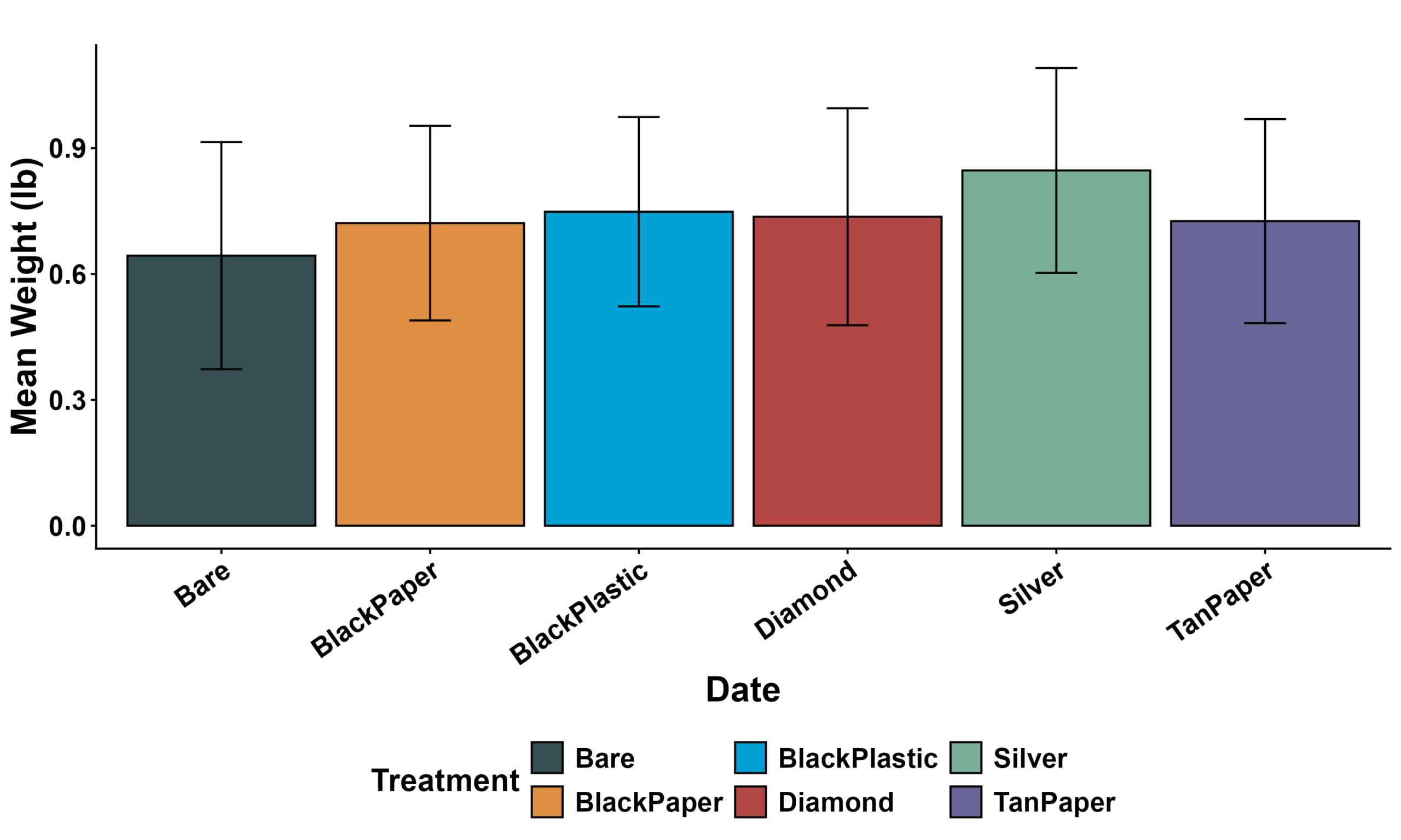 Fig 1.Mean onion bulb weight (± SD) across six ground-cover treatments.