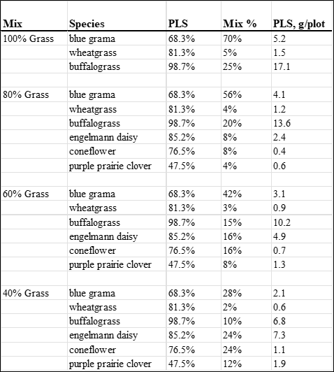 Table 1. Mixes planted by Texas Tech personnel. PLS = pure live seed.