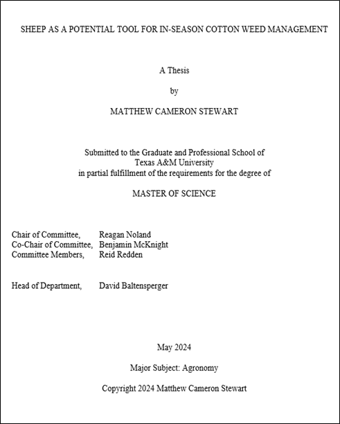 Graduate student Colbin Briley completed his master’s degree and developed the research thesis titled "Using Lambs to Control Weeds in Cotton”