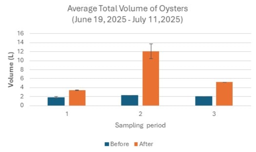 Figure 8. Average Total Volume of Oysters (June 19, 2025 – July 11, 2025)