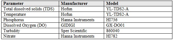 Table 1. Water quality parameter sampling equipment manufacturers and models.