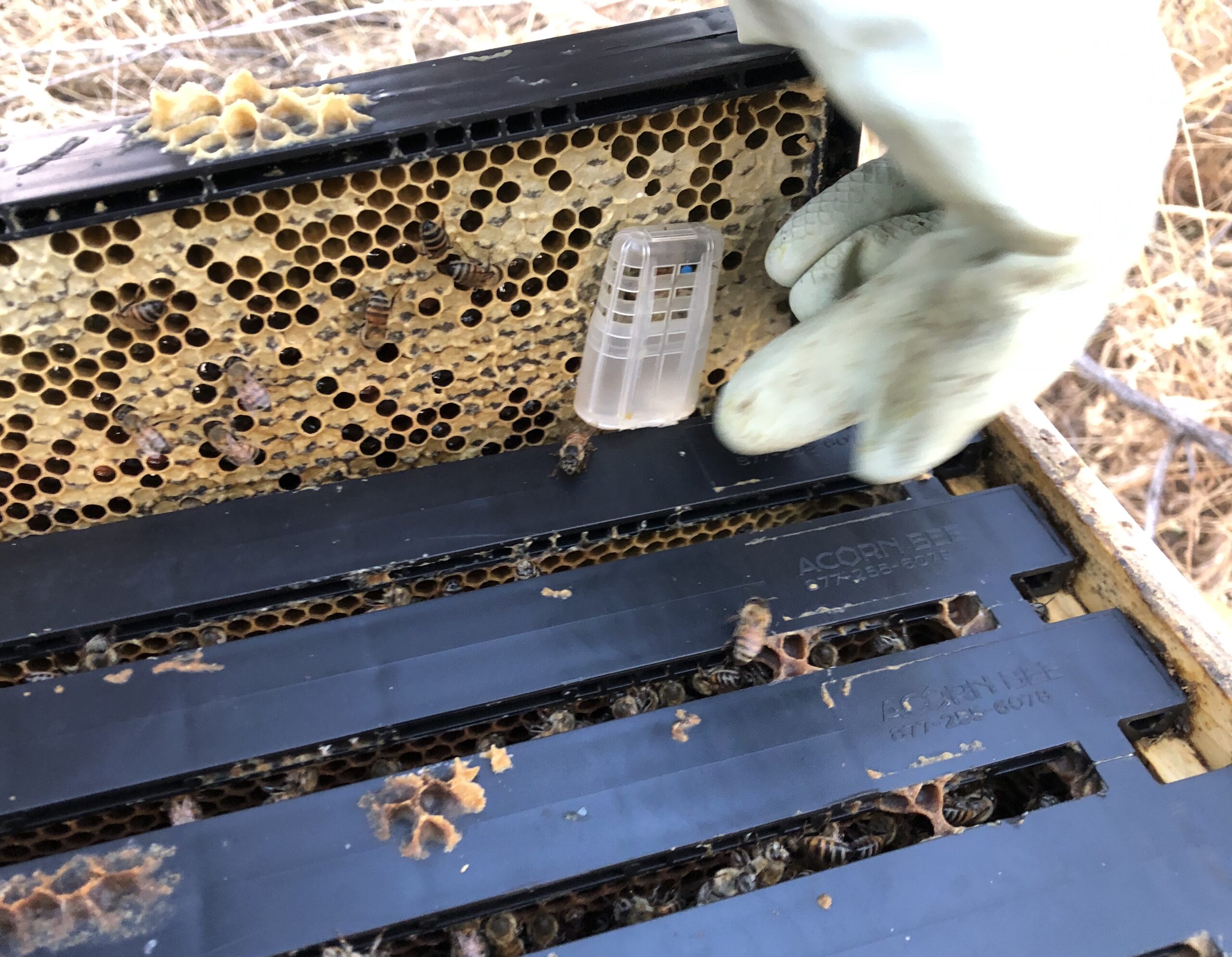 With our technique the acceptance of the new queens was surprisingly high; we had a 93% acceptance rate with the New Mexico queens (n=25 queens), and 72% with the Hawaii queens (n=21 queens). The difference between these 2 groups could be due to several reasons: A-we drove to NM to bring the queens directly to Arizona, the Hawaii queens were shipped, B-the time of the year in which the splits were created, and the queens introduced. The NM queens were introduced earlier in 2020 when the drought had not impacted the colonies as much.