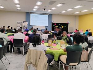 The newly appointed USDA urban agriculture program director talked about grant opportunities for urban agriculture and other programs. Monica Hernandez discussed T. Moise Farms' approach to agrotourism and value-added products. Mitchell Provensal, the program director of Baton Roots Community Urban Farm, spoke about Bokashi composting and included a hands-on demonstration—he provided Bokashi buckets as a giveaway item. John Nettles of Slow Hike Co spoke about local foraging specialties such as mushrooms and plants; he also offered culinary samples of different dishes that used foraged items for participants. Ashlyn Harrison leads a session on the importance of mental health.